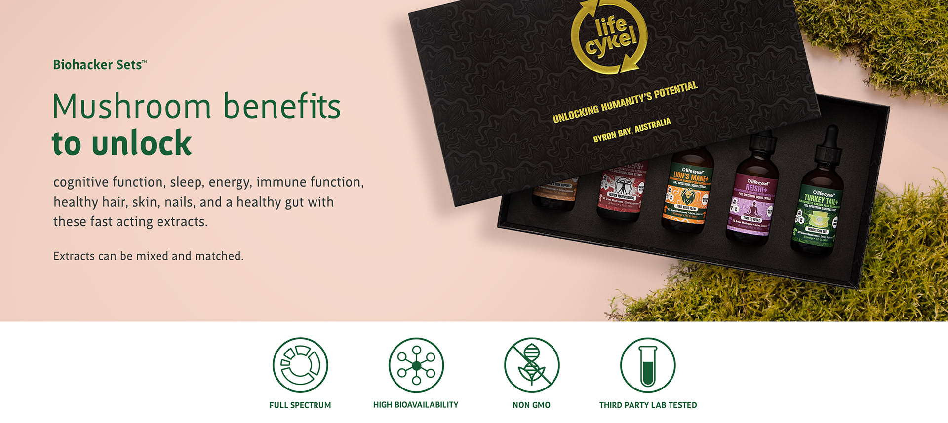 Official designed storefront page of Life Cykel, a mushroom biotechnology company sold in Amazon.